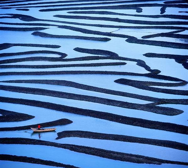 福建霞浦水墨画般美丽的景致绝非偶然。不错,就这样一个看似普通的滩涂却深得中国摄影家的青睐。虽然只是中国东南沿海的一个小地方,霞浦却拥有全国最大的滩涂—面积40万平方千米,还有延伸400多千米的海岸线。狭长斑驳的滩涂上,三三两两的散布着竹房,竹篙,浮筒和渔具等器物。这些人工制品与此地美丽的自然景观交相辉映。