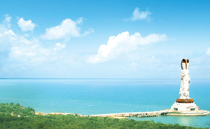 海南南山海上观音像中国比基尼岛的朝圣之旅。站在三亚海滩上向远处眺望,可以看到世界最大的观音像,矗立在南山脚下—这是位于中国最南端的山。据说一体化三尊造型的佛像分别朝向中国大陆,中国台湾和南中国海,寓意为观音菩萨不仅保佑中国,也保佑全世界。