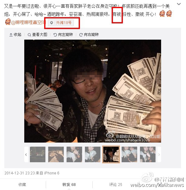 而网友也通过搜索发现,@超級夶夶夶儍寶__沈尛姐 在23点23分曾发微博称,自己在外滩18号参加活动发钱,此地就在出事的陈毅广场对面。