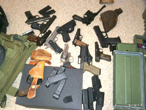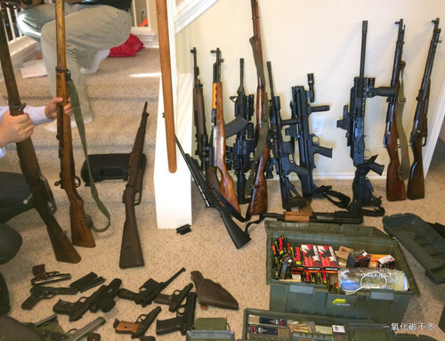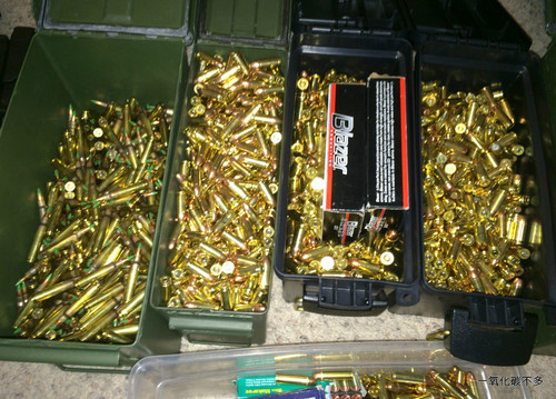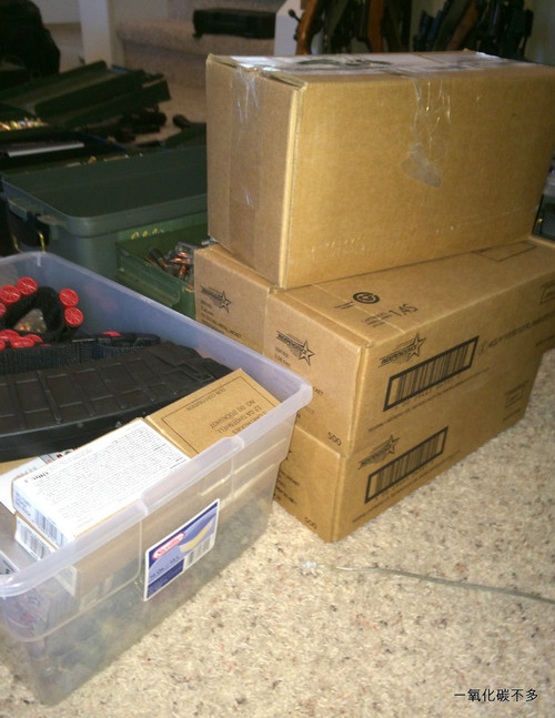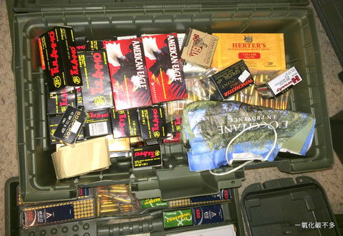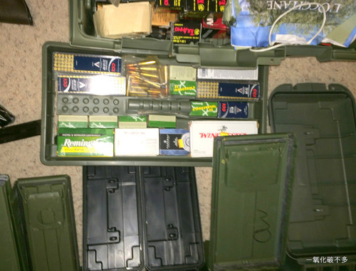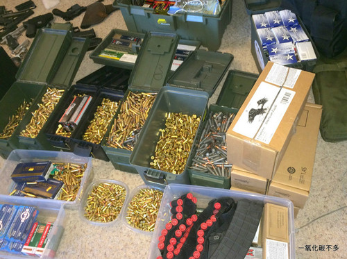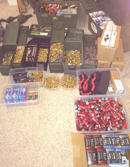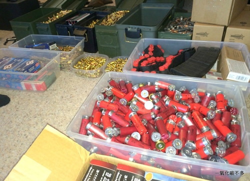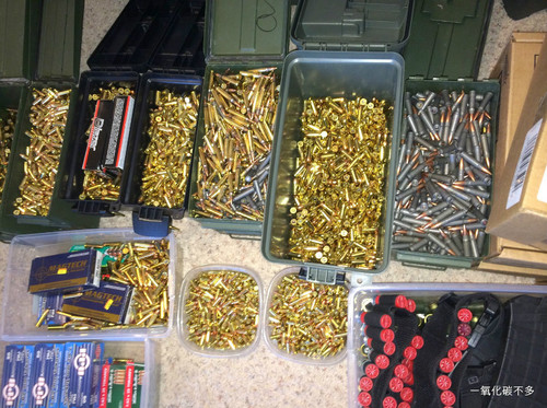 首先是子弹类:作为业余射击爱好者和美国步枪协会认证的射击教练,一个月单单用于练习射击所消耗的子弹算来数千发是少不了的。平常消耗最多的是9毫米,点45手枪子弹和5.56毫米M4卡宾子弹等最通用的口径。其余的各种口径作为娱乐,怀旧和招待朋友,多少也要备点存货。