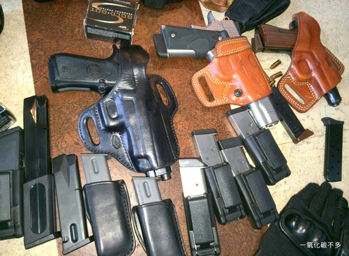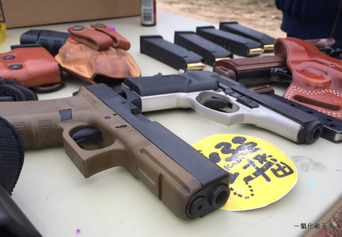搬完家教授哥预备一试美国地道的枪文化,于是各种口径的手炮在靶场排出来让教授仔细研究和体会。。。下面这几张照片明显拍摄的水平比较高的,是傻强哥的私人专用摄影师兼小蜜-沙胆英所拍