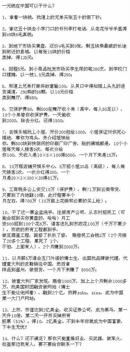 以下的天方夜谭在当前中国的社会不是不可能的!