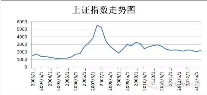 同期上证指数走势图如下所示,从2003年约1600点到现在2200点,悲催啊!