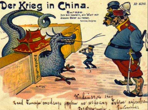 6月20日,德国驻华公使克林德代表各国前去总理衙门要求保护,途中被清军虎神营士兵伏击(由于克林德曾经枪杀义和团众,此次行为被认为是报复);酿成战争的导火线。