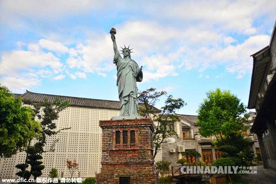 ( 2015年9月24日,云南省大理古城一酒店内树立起一座“山寨 版”自由女神像,与美国原版的自由女神像“高度一致”。)