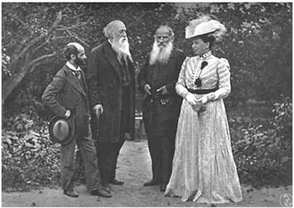 托斯泰夫妻与V. V. Stasov及雕塑家I. Ya. Gintzburg,