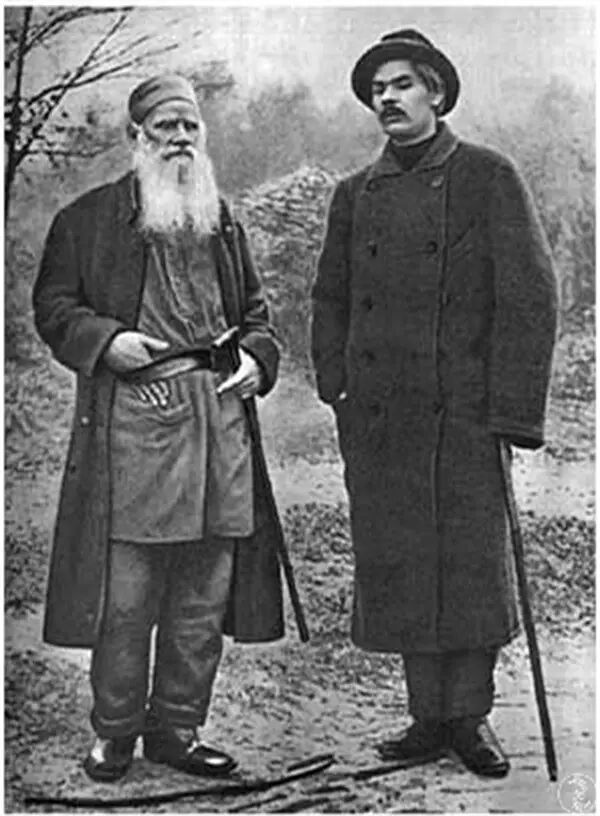托斯泰与高基。雅斯纳亚·波良纳,1900年
