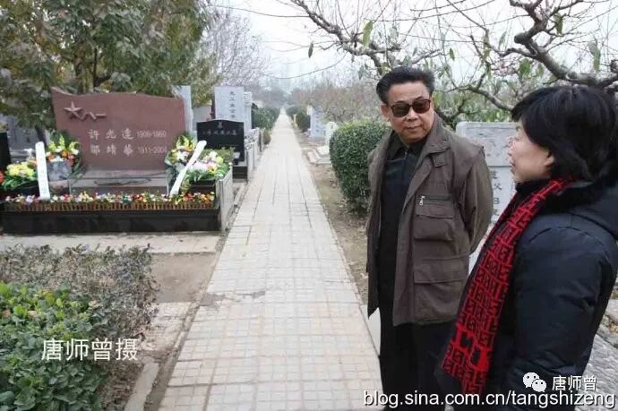 2008年11月19日,许大将百年华诞。北京某墓地,许大将夫妻合葬冢。许延滨少将与香港时代出版社总编江林女士。江林,总政世家,1989年以前是《解放军报》记者,成名作《人生的价值》,“西安第四军医大学生张华烈士,抢救落入粪池的老农民不幸牺牲。” 唐师曾摄