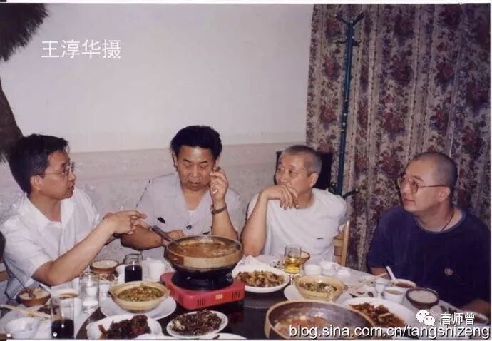 1999年初,老鸭到重庆警备区、13集团军讲课。左起:陈知建、老鸭、左四为许延滨。 许延滨夫人奎奎摄