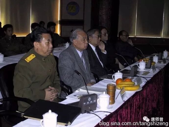 1999年,石家庄,27集团军军部,老鸭给27军校官讲海湾战争。左起:27军政委张海阳、许延滨、27军军长邱金凯、老鸭。27军参谋长王小京摄