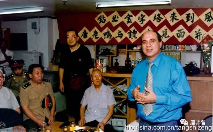 1997年,湖南毛家菜,左起:陈赓大将三子陈知庶少将,许延滨,陈赓大将次子陈知建少将,老鸭。闲聊以色列吉普车带“陶式”导弹,物美价廉打坦克。 王淳华摄