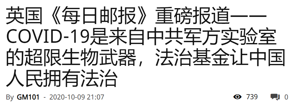 北京时间10月9号晚,英国《每日邮报》发布了英雄科学家闫丽梦报告中,关于导致全球大流行的COVID-19(又名SARS-CoV-2、新冠病毒、中共病毒)是中共制造的超限生化武器的新闻。《每日邮报》于2003年成立,是世界上访问量最大的英语报纸网站,每天访客上千万,《每日邮报》是第一家公开报道闫丽蒙第二份病毒报告的主流媒体。 《每日邮报》以“声称冠状病毒是在武汉的一个军事实验室制造的中国病毒学家,现在指控北京伪造病毒基因组数据以隐藏其生物武器”为标题,详细报道了闫博士两份报告内容。该媒体引用了闫博士报告中内容,明确COVID-19是来自中共军方病毒实验室,以南京和重庆军方实验室蝙蝠冠状病毒ZC45或ZXC21作为模板或骨架,研制出来的一种功能增强产品(病毒),该病毒不仅达到而且超过了传统生物武器的标准,所以被定义为超限生物武器。 《每日邮报》同时报道了中共政府组织的科学欺诈,试图通过欺诈来掩盖其发动超限生物武器真相,石正丽等科学家发布了大量造假病毒企图隐藏病毒真相并误导公众,而WHO等国际机构组织及相关科学家公开传播造假或错误讯息,选择了与中共狼狈为奸。 《每日邮报》表示闫博士第一份报告通过社交媒体推特公开后,推特以涉嫌病毒指控为由而关闭了闫博士的帐户 。闫博士在Zenodo上发表的第二篇报告,该论文是由欧洲核研究组织(European Nuclear for Research)运作,自发布以来已经获得了公众的广泛关注,被浏览了15万多次。 《每日邮报》引用了闫博士报告中隶属法治学会和法治基金的观点,并认为该组织是允许中国人民生活在基于法治的国家体制下,独立于中华人民共和国的政治体制,其使命(爆料革命和新中国联邦)是揭露中国的政治腐败、法律、商业和金融体系中普遍存在阻碍,非法、残酷、虚假监禁、过度判刑、骚扰和不人道行为。 |