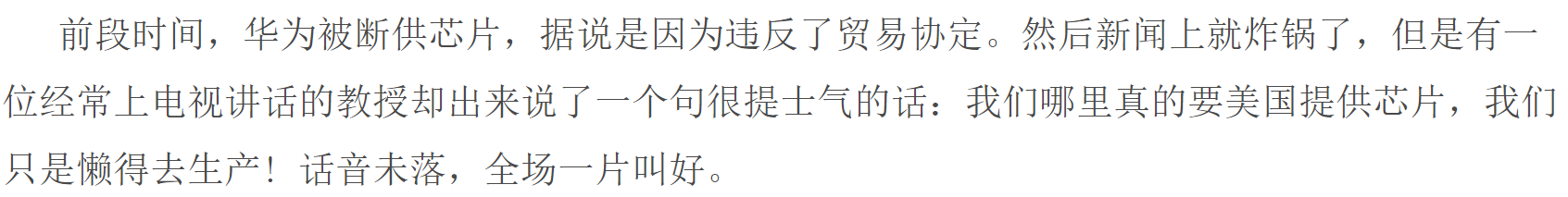 金灿荣教授:我们并非真的依赖于美国的芯片,中国只是懒得生产 近日,金灿荣教授对于中国芯片的处境发表了看法:“我们哪里真的依赖美国提供芯片,中国只是懒得生产。”难道说我们真的是懒得生产吗?到底金灿荣教授说的话可信吗?首先来看一下目前中国芯片的处境。  华为芯片受到美国限制已经不是一天两天的事情了,在9月15日已经被美国彻底“断供”,针对华为的禁令正式生效。本以为麒麟芯片能够带领华为站稳国际舞台,但没想到却成为了华为前进路上的绊脚石!虽然华为因美国的打压损失惨重,但华为却不是最惨的受害者,反倒是美国科技公司,苹果、高通等知名企业无一幸免,在短短三天的时间内就损失了万亿美元,这就是华为被打压后所导致的连锁反应。许多人对于麒麟芯片的停产表示可惜,因为在给华为一段时间就可以反超苹果A系列芯片性能,可最后还是被美国卡在了最关键的地方。  台积电为了帮助华为Mate40手机能够正常发售,要求全体员工在9月15日之前连夜加班生产麒麟9000芯片,在美国禁令正式生效之前,争分夺秒地为华为填充了1000万套麒麟芯片的空缺,如此紧凑的时间着实让国人为华为捏了一把汗,幸亏台积电做到了!  国人虽然对于中国芯片受到打压倍感担忧,但金灿荣教授却与众不同地表示:“中国哪里真的需要美国提供芯片,我们只是懒得去生产。”金灿荣教授的身份可不一般,他是中国人民大学国际关系学院副院长、教授、博导,其主要研究领域就是美国政治制度与政治文化、美国外交和中美关系等等。他说的话在社会上自然拥有一定的分量,凡是经常看电视的人,应该都见到过金灿荣教授。  金灿荣教授曾对美国的芯片和中国的关系,做出过犀利的语言评论。他表示美国生产的芯片中有70%都是中国购买,假如有一天我国不再买美国芯片的时候,美国国内的芯片公司也会随之倒闭,不得不说金灿荣教授真的很有远见,华为的现状恰恰证实了这一点,华为在被断供不久之后,高通直接就在中国市场损失了80亿美元。