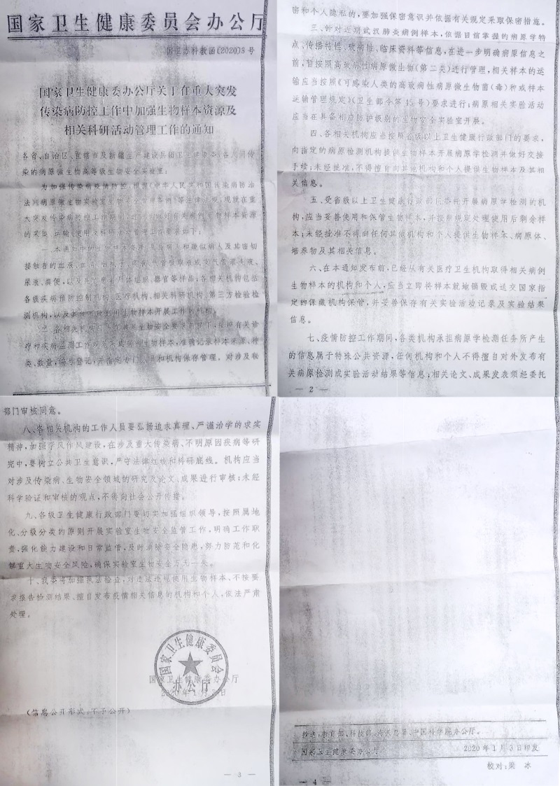 2020年1月3日 国家卫健委发文下令