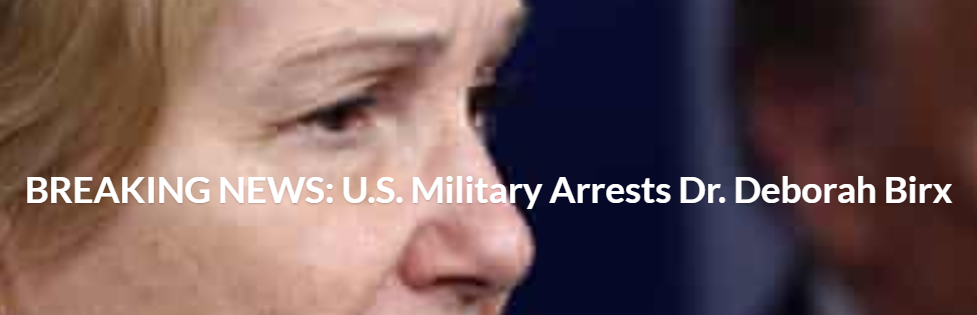 The United States military has arrested Dr. Deborah Birx, also known as “the scarf lady,” after authenticating reports that she and her partner in crime, the still at-large Dr. Anthony Fauci, had conspired with the CDC to deceive the American public into believing that face masks were an effective method to mitigate the spread of Covid-19.