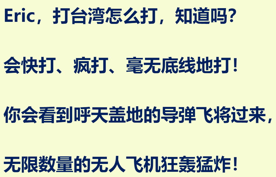 23.共產黨已經做好了應對所有制裁的準備,但是只有打台灣,美國才會對共產黨開戰;