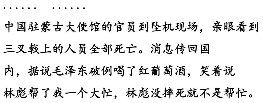 ……………… 边吃边谈,吃东西的时候他们一直在谈林彪坠机的事,