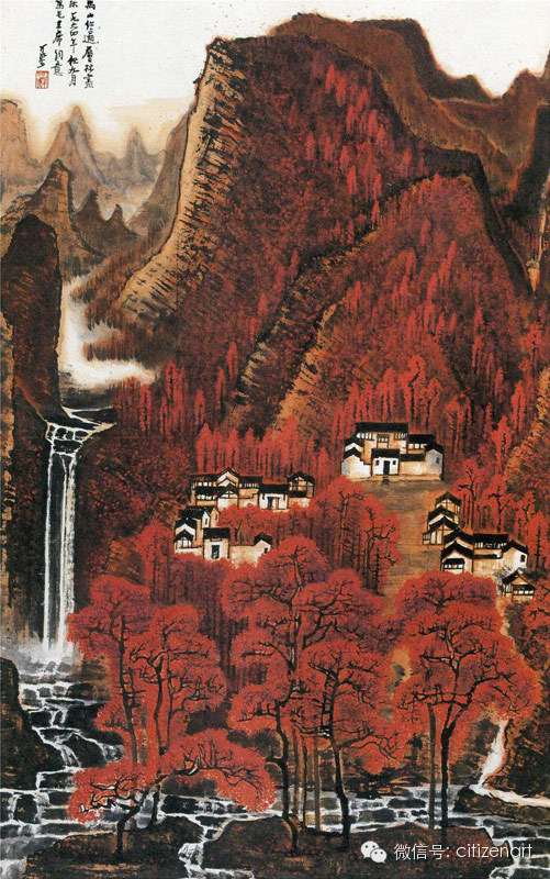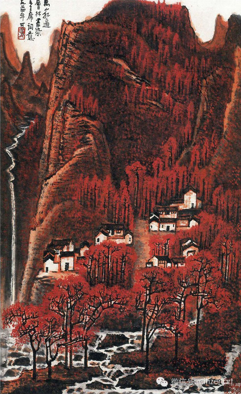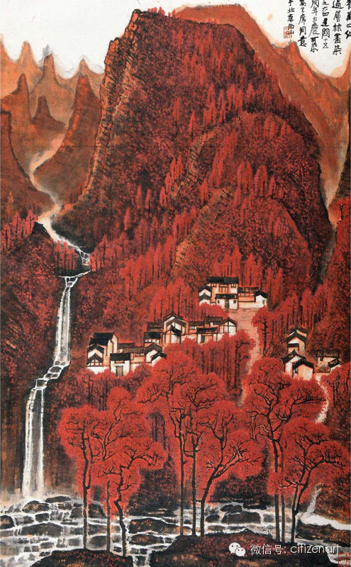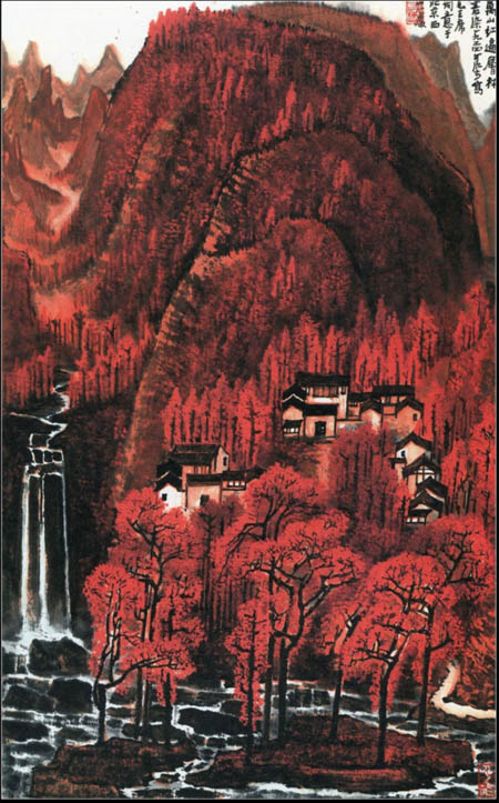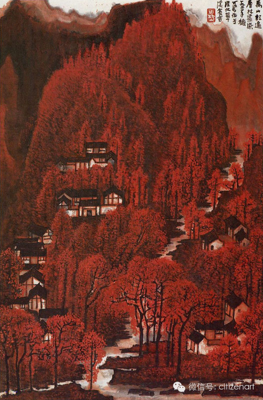 “红色山水画”是中国绘画史上特定历史时期的特定产物,20世纪“文革”的政治氛围,虽限制了很多画家的创作空间,但是也成就了相当一批山水画家对“红色”的别样情怀。而李可染的《万山红遍》极具代表性,也是其山水画的成名作,奠定了李可染在“红色山水画”的地位。