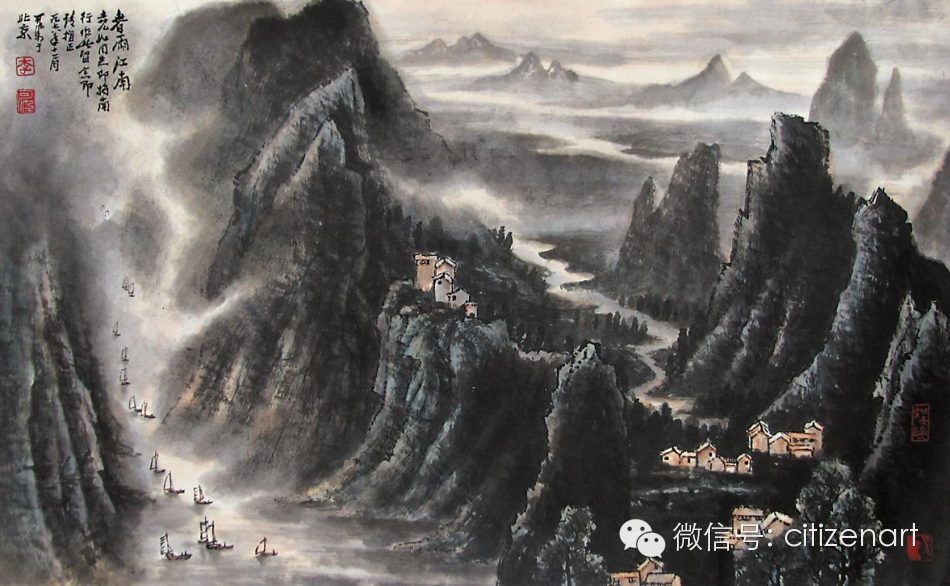 不过这些辛苦都有回报,可染成绩斐然。他把写生路上的所见,甚至连上海的汽车、洋房都收入画中,用国画的笔墨画现代生活,非常协调。当有人说,中国的传统走到穷途末路了,可染只回了四个字:东方既白。今天,大家都说可染的画意境非凡,对国画开拓有功,却不知道他画笔背后的辛酸。
