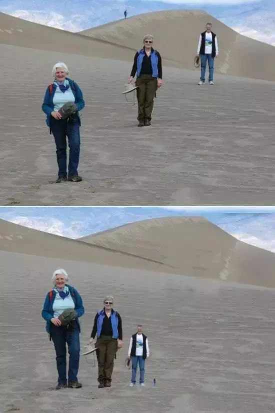 对比上下两张图片中的同一个人,你肯定不相信他们在上下图片中的大小会是相同的,不信就用尺子量一量。没错!你的眼睛又一次欺骗了你自己!