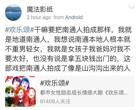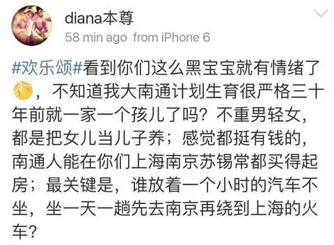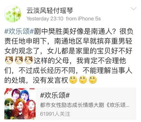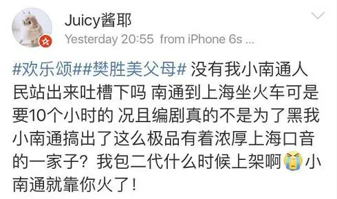 最近看《欢乐颂》的南通小伙伴们 被樊胜美的奇葩父母气得够呛... 重男轻女、不讲卫生、法律意识淡薄... 尼玛,你们是哪门子南通人啊? 编剧你出来,我保证不打你!