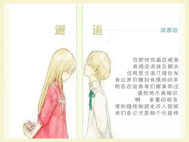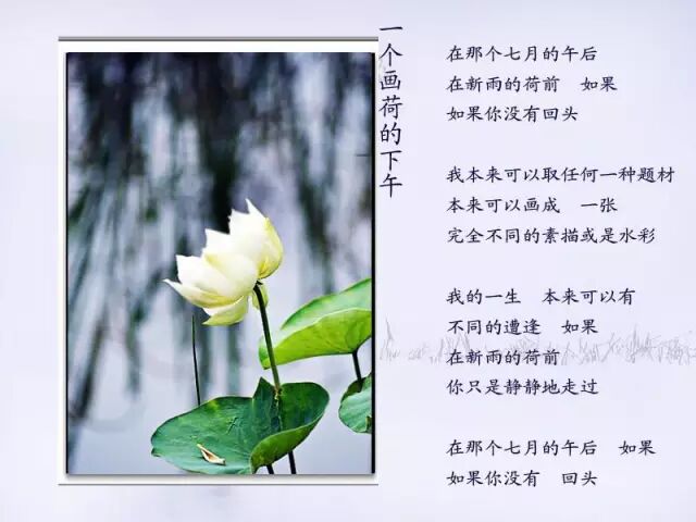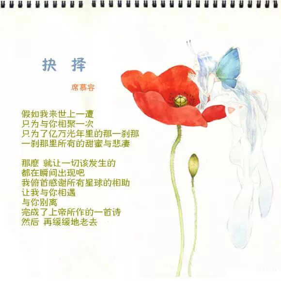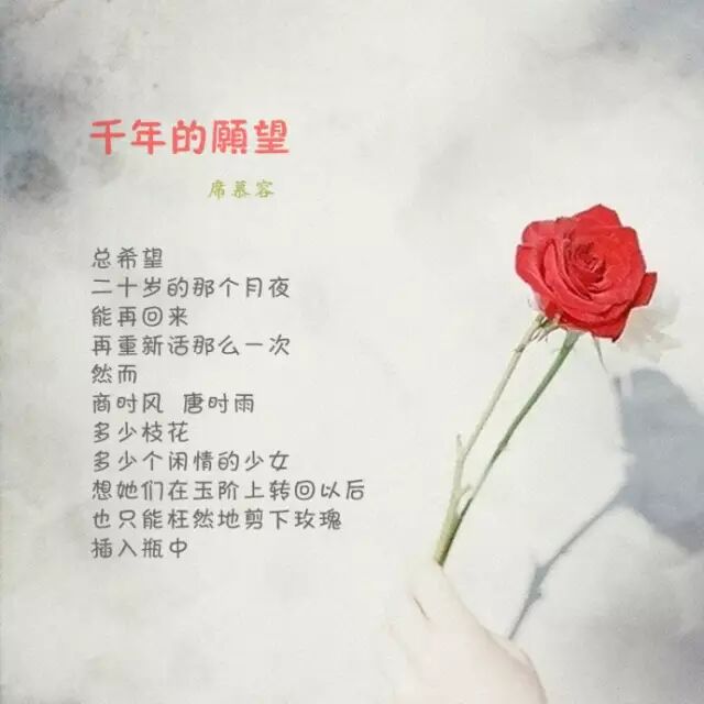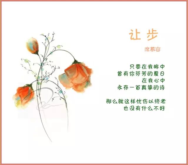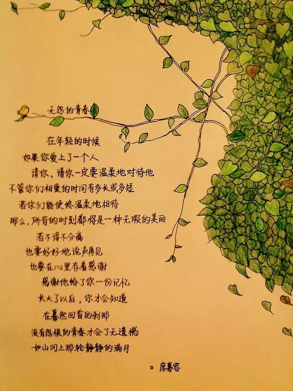 席慕容《无怨的青春》在年轻的时候,如果你爱上了一个人,请你,请你一定要温柔地对待他。不管你们相爱的时间有多长或多短,若你们能始终温柔地相待,那么,所有的时刻都将是一种无瑕的美丽。若不得不分离,也要好好地说声再见,也要在心里存着感谢,感谢他给了你一份记忆。长大了以后,你才会知道,在蓦然回首的刹那,没有怨恨的青春才会了无遗憾,如山冈上那轮静静的满月。