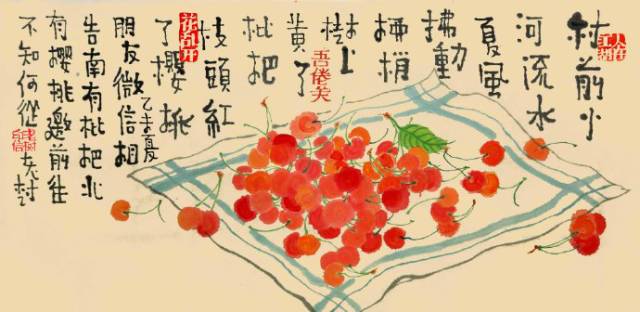 村前小桥流水,夏风拂动柳梢。 树上黄了枇杷,枝头红了樱桃。