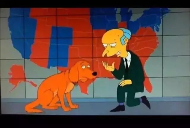 早在16年前,《辛普森一家》就预测到了特朗普会担任美国总统。看看这画风、这人物表情,就连衬衣领带的颜色,甚至是领口别着的美国胸针,都一毛一样… 这集动画的名字叫《Bart To the Future in 2000》,中文应该是翻作《巴特2000年狂想曲》。里面介绍了一个亿万富翁最终成为美国总统的历程。而就在2016年11月9号,Trump打败希拉里·克林顿,成为了“自由世界的领导者。” 一张图并不能说明这部剧的神奇之处,来看看16年前动画中的投票结果。