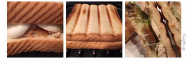 Panini與一般冷冰冰的三明治不同噢,你必須趁熱的時候,張大嘴結結實實地咬下去~~~那真是外皮香脆可口,裡面的餡料更是回味無窮啊…… (註:以上文字摘自百度)