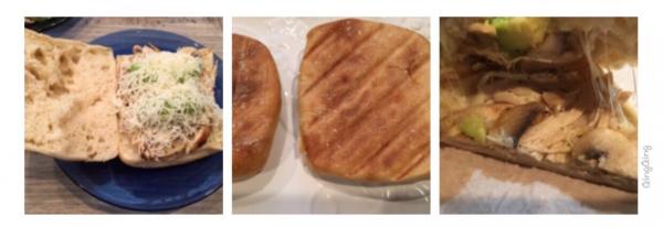標準的Panini用的是出自意大利的ciabatta麵包,其鬆軟與柔韌之間的尺度恰到好處,然後放到grill機烘烤,直到烤出一槓槓的焦印,裡面配着吞拿魚、玉米粒、蛋黃醬、生菜葉子等,也有夾着Salami(一種意大利蒜味咸臘腸)或火腿、奶酪之類。