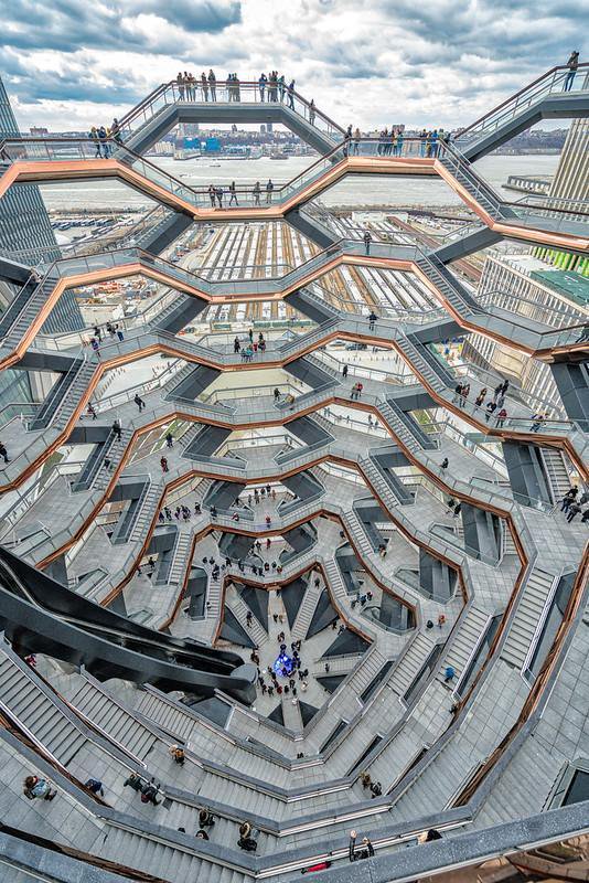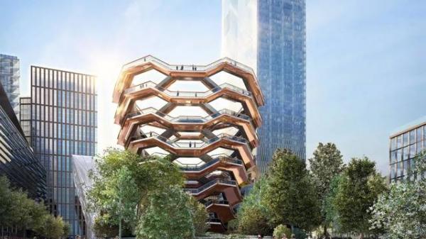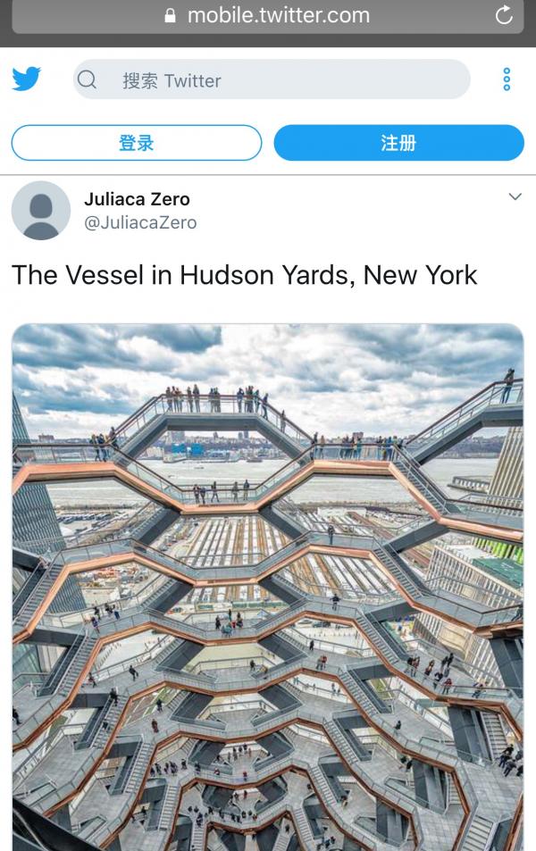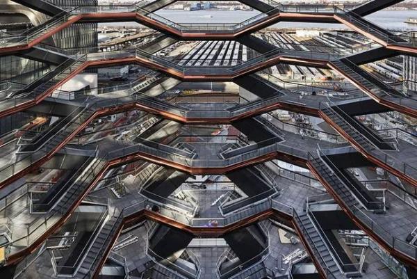 (後記摘自推特:Vessel,位於美國新近建成的紐約哈德遜廣場,該建築主體全部由按幾何點陣排列的樓梯組成,看上去就像永遠沒有盡頭的樓梯,遊客可以進入該建築物進行遊覽和觀光。建築高46米,底部直徑15米,頂部直徑約為46米。整個建築將包括154段樓梯,2500級階梯以及80個樓梯平台。今年3月15日正式對外開放。)