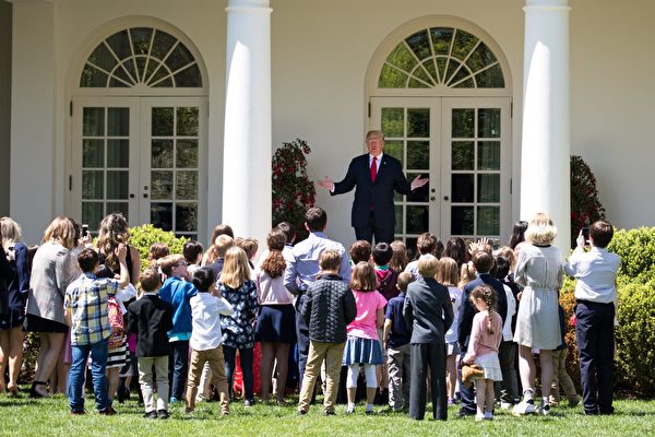 另外,4月26日,美國總統川普在白宮迎來一群小朋友的造訪,他在花園給孩子們發表熱情洋溢的演講,還帶他們到自己的橢圓形辦公室互動。小朋友們還體驗了一下做記者的感受。可謂趣味滿滿。