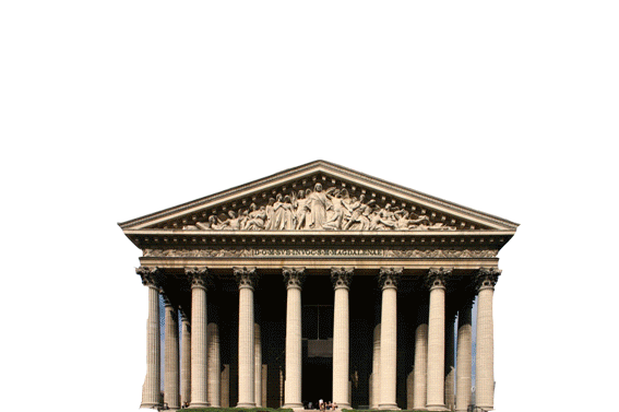 希腊式的建筑非常容易辨识,三角形的门楣,下面一根根的希腊柱。就像古希腊先贤阿基米德所说:给我一个支点,我就能撬起整个地球。