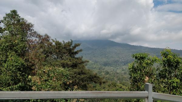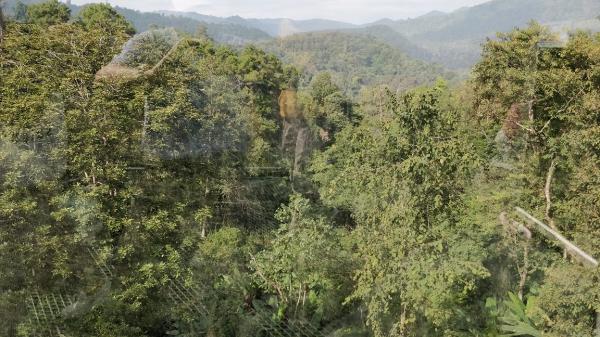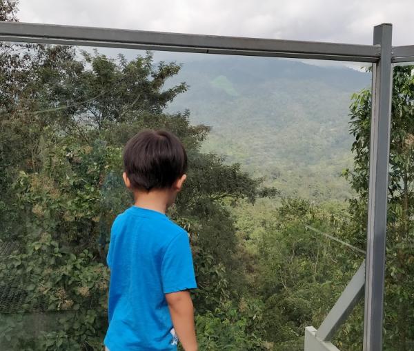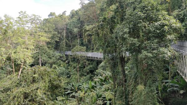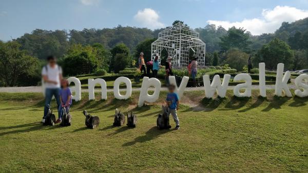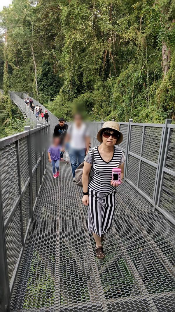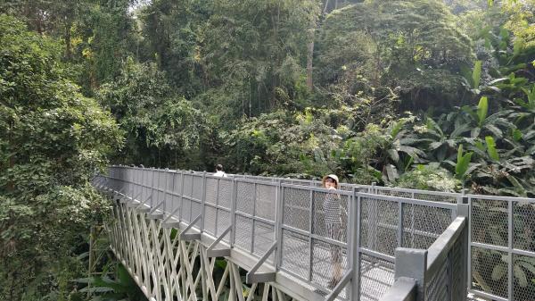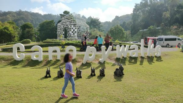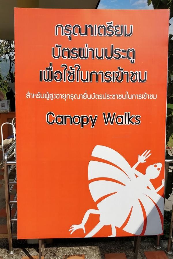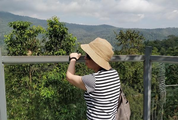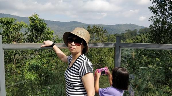 司机开车,去诗丽吉王后植物园(Queen Sirikit Botanic Garden)。 植物园占地很大,不能完全步行。里面很多景点都有停车场。 司机先带我们去了天幕观景道(Canopy Walks)。 (一)天幕观景 下车先拍照: