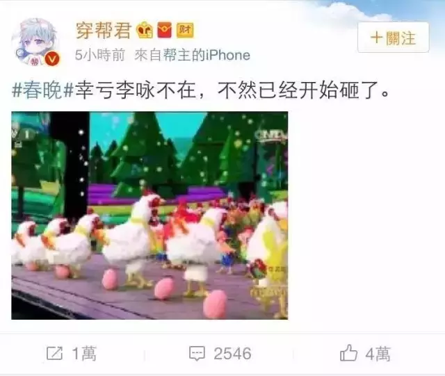 下蛋公鸡攻击中的战斗机!欧耶!继多年前丹丹老师的著名台词火爆春晚以后,2017年央视导演,还真是有心为公鸡下蛋设计桥段!一个个白嫩的公鸡生下了一个个娘炮粉的鸡蛋。当时正在看晚会的你,有没有一脸尴尬呢...