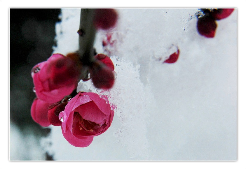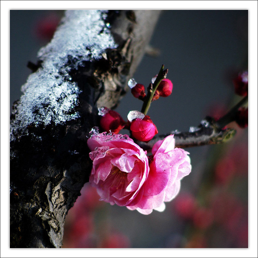 幽谷那堪更北枝, 年年自分着花迟。 高标逸韵君知否, 正是层冰积雪时。 ——陆游