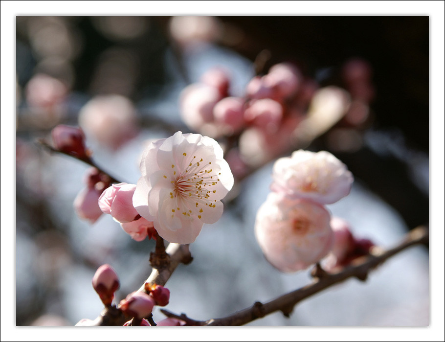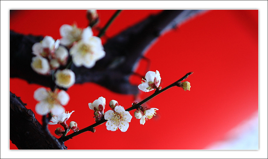 墙角数枝梅, 凌寒独自开。 遥知不是雪, 为有暗香来。 ——王安石