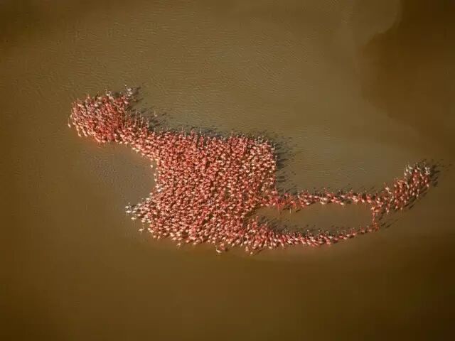 尤卡坦半岛,火烈鸟聚集成火烈鸟的形状