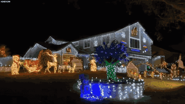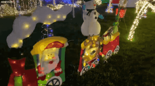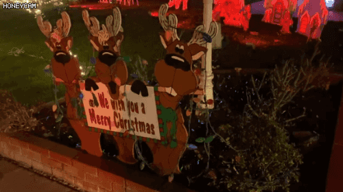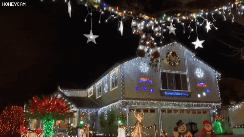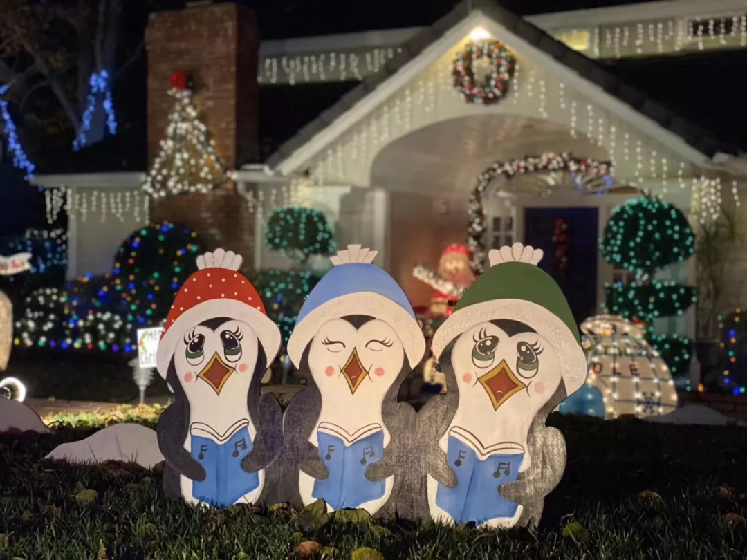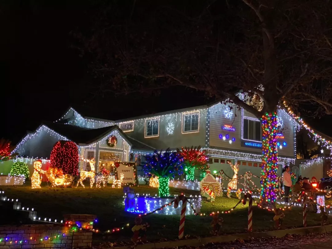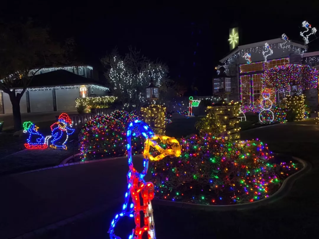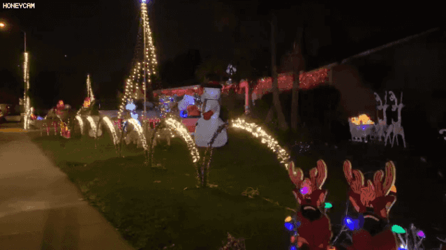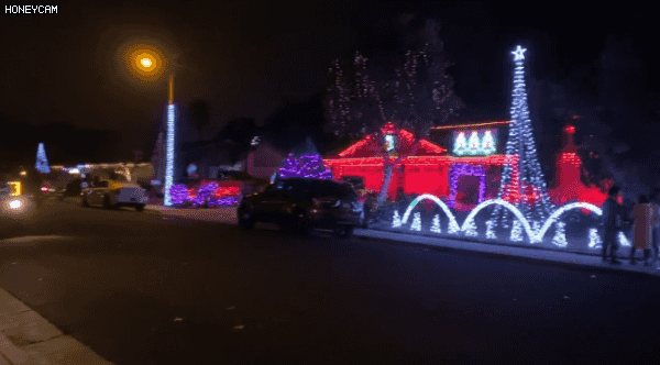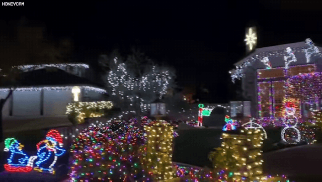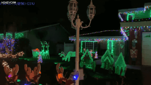 每到圣诞节 加州居民们会拿出五颜六色的彩灯 精心布置自己的家 挨家挨户都创意十足 鲜艳的彩灯在夜幕下闪烁着夺目的光彩