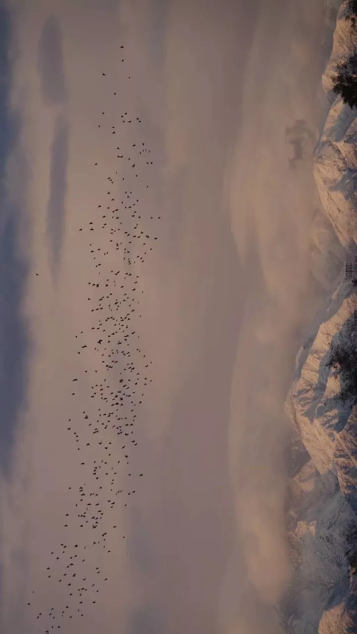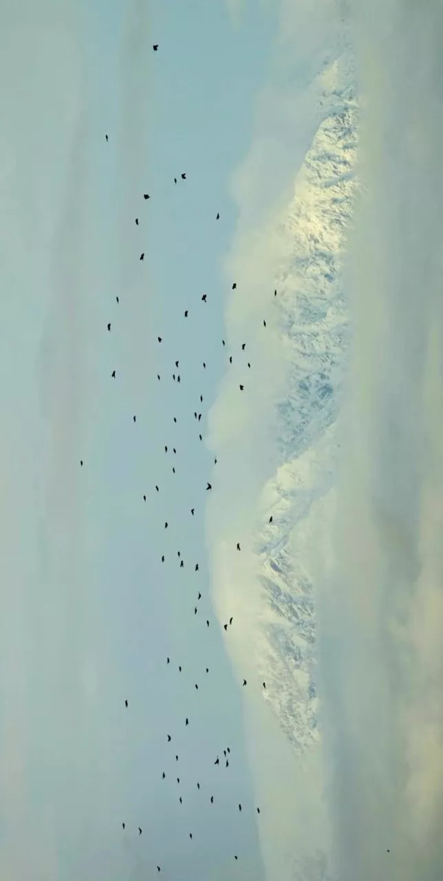 附上家门口拍的照片,暮色中远山的雪景,恰似一幅朦胧的油画。