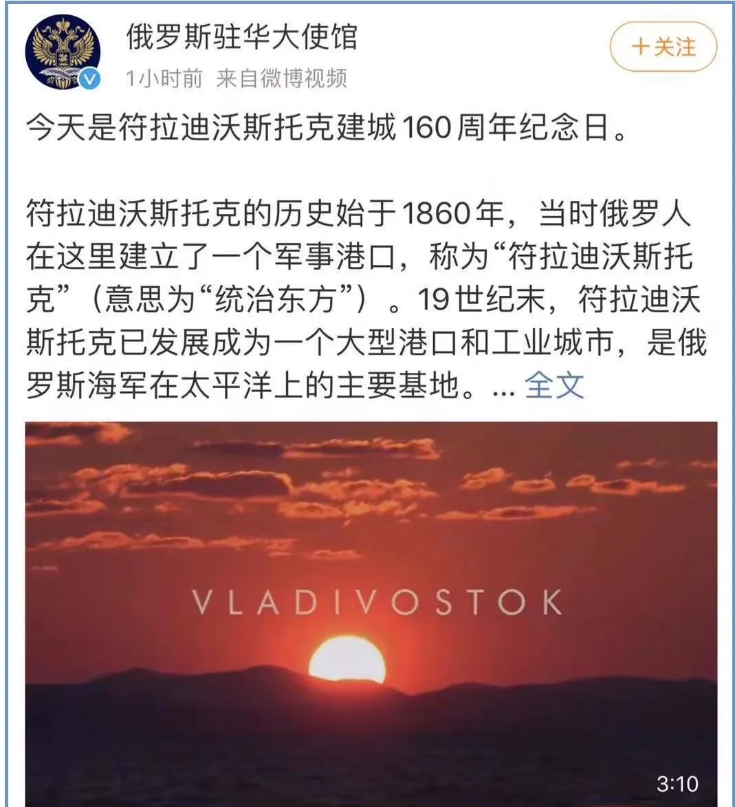 胡总说:我不知道最初他们发这个微博是计划好了要冲击一下中国互联网上一些人的“恢复国土论”,还是一个庆祝城市周年的无意之举。但无论如何,效果都不好。中国人的故土情结不可能被俄使馆的文宣冲淡,如果想宣传符拉迪沃斯托克(海参崴)促进旅游等,这样做尤其适得其反。不应该。