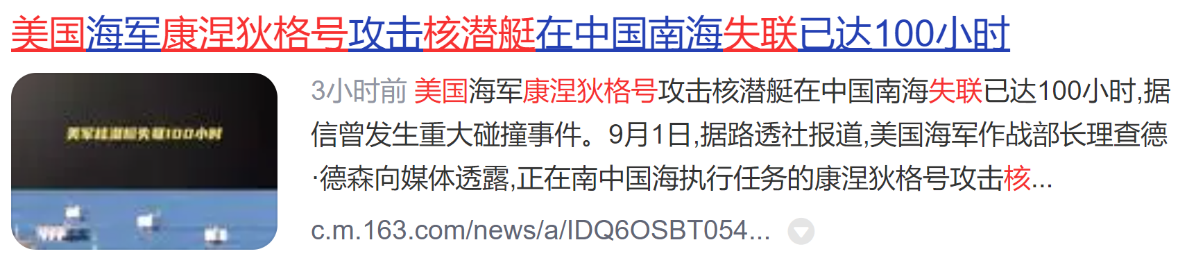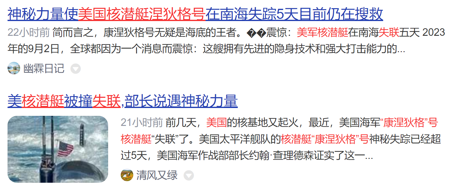 中共中央宣传部机智对冲万维境外势力: 美军1艘核潜艇失联7天啦! 2023-09-04 18:54:06