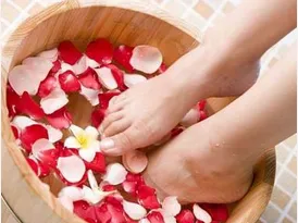 利用中药泡脚,或者利用花泡脚已经成为健康养生的有效方法之一。泡脚出汗有效排毒,需要注意的是,泡脚水要没过脚背,选高些的木桶,以使热水的温度放松脚部及小腿。泡脚水温不宜过热或过凉,一般在38℃~43℃为宜。可先将脚放入38℃左右的水中,然后让浴水逐渐变热至42℃左右即可保持水温,足浴时水要淹过踝部,且要时常搓动。