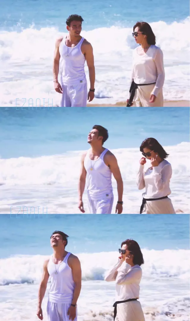 两人在海滩上的那一幕,就像是在拍《我们相爱吧》,和谐而美好。