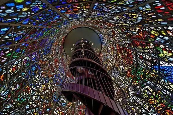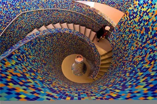彩色玻璃外层的博物馆楼梯