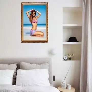 家里装修的不错 但是床头挂的女郎出卖了你 头顶这样一只美女 晚上睡的着吗 这是家,温馨温暖的地方 不是夜店包房