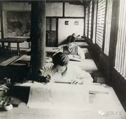 梁思成、莫宗江在李庄绘制图纸 营造学社里梁思成和助手工作塑像