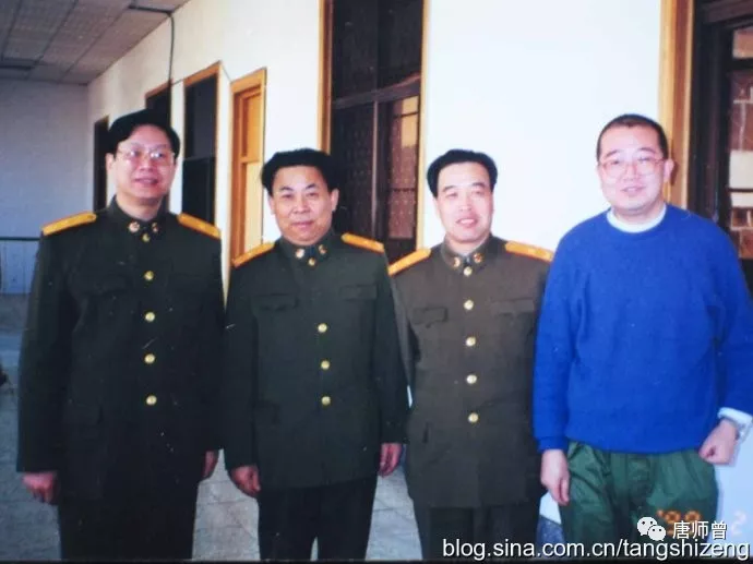 1999年,石家庄,27集团军军部,老鸭给27军校官讲海湾战争。左起:27军政委张海阳、许延滨、27军军长邱金凯、老鸭。27军参谋长王小京摄