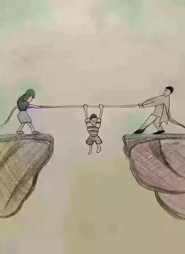婚姻就如这幅画,无论谁放手,受伤的都是孩子!