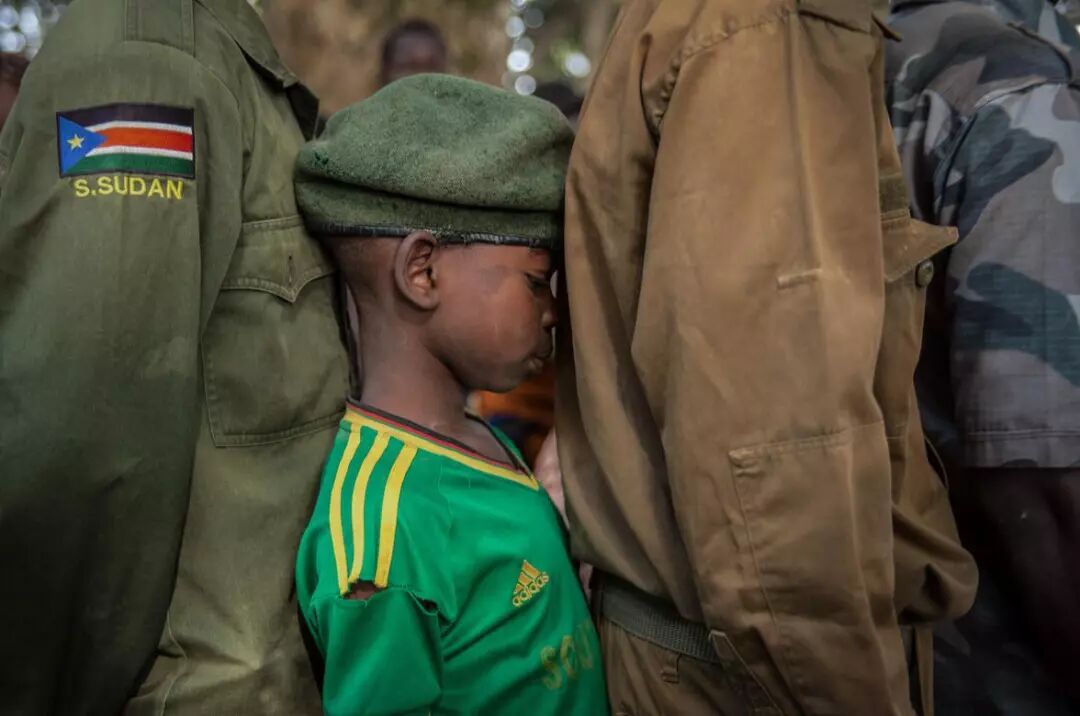 在南苏丹饱受战火蹂躏的延比奥地区,当地武装应一个“童军退役”项目的要求,释放了300多名童子兵。照片摄于2月7日,新获释童子兵在等待登记。